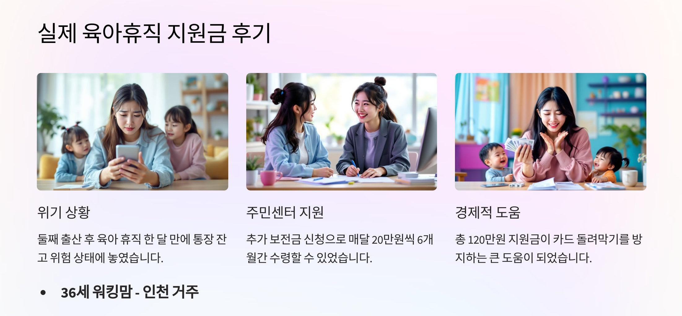 급여가 절반 이하로 줄어들고, 매달 고정지출은 그대로인데 수입이 줄어들면 결국 마음이 불안해집니다. 아이와 함께하는 시간은 소중하지만 매일 이번 달 카드값은 어떻게 하지? 같은 고민을 하게 되면 그 소중한 시간도 불안감 속에 흘러가 버릴 수 있어요. 그런데 알고 보면 육아휴직 급여 외에도 정부와 지자체가 제공하는 소득 보전 정책이 꽤 다양하다는 사실 알고 계셨나요?